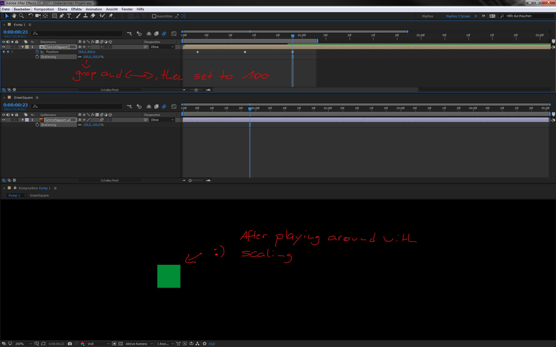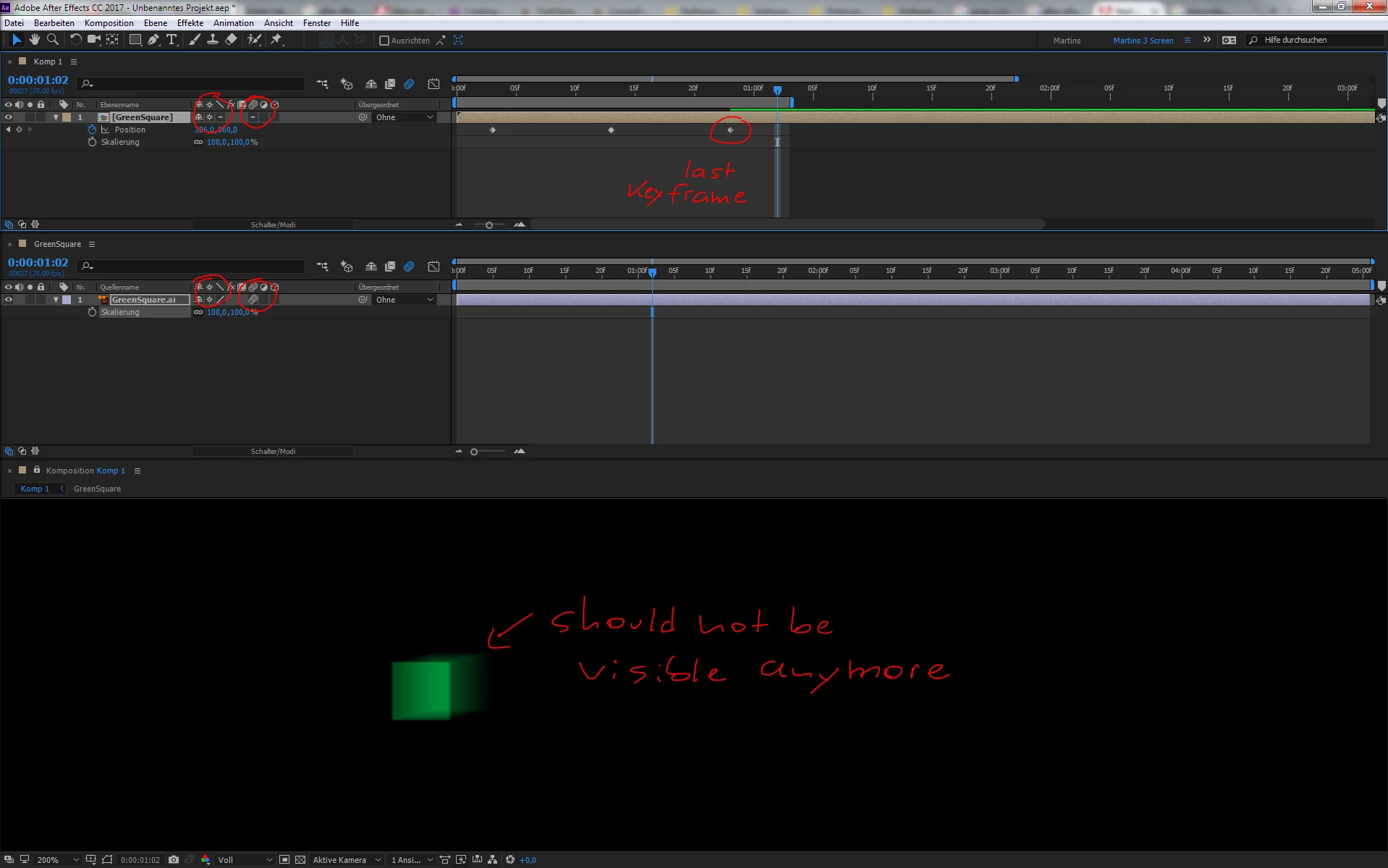 Now to the crazy part: if collapse transformation is activated on both items, motion blur stays at and after the last frame. When I go one frame further and change the scaling (99% or 101%) of the comp, motion blur disappears as it should be.