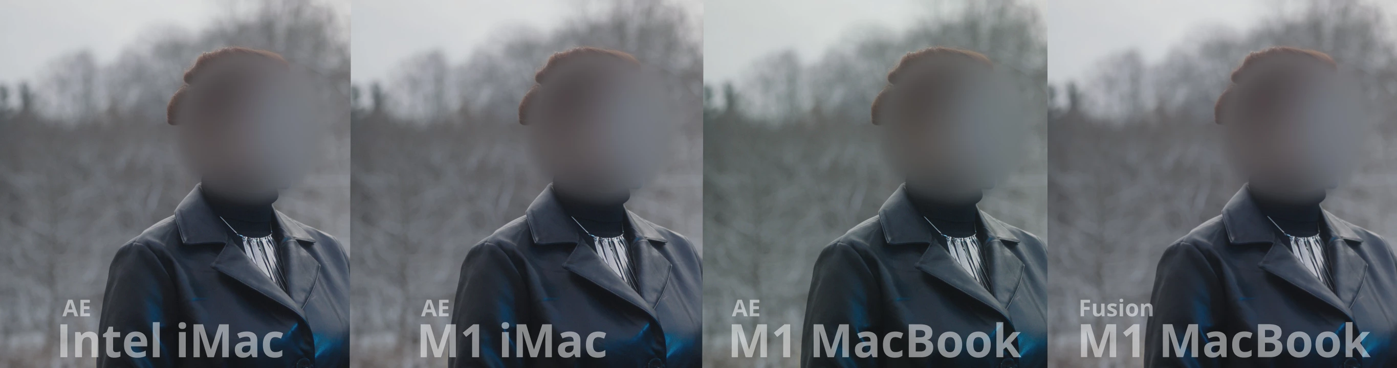 Image description, the first 3 panels are all rendered from the same file from different machines, as you can see the 3rd panel has a more green tint. the 4th panel is from the same computer that rendered the green tinted 3rd panel, but rendered from Fusion to show that it is a issue with the software not the computer.