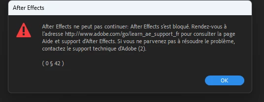 au lancement de After Effects 2023 (23.5) j'ai un crash: