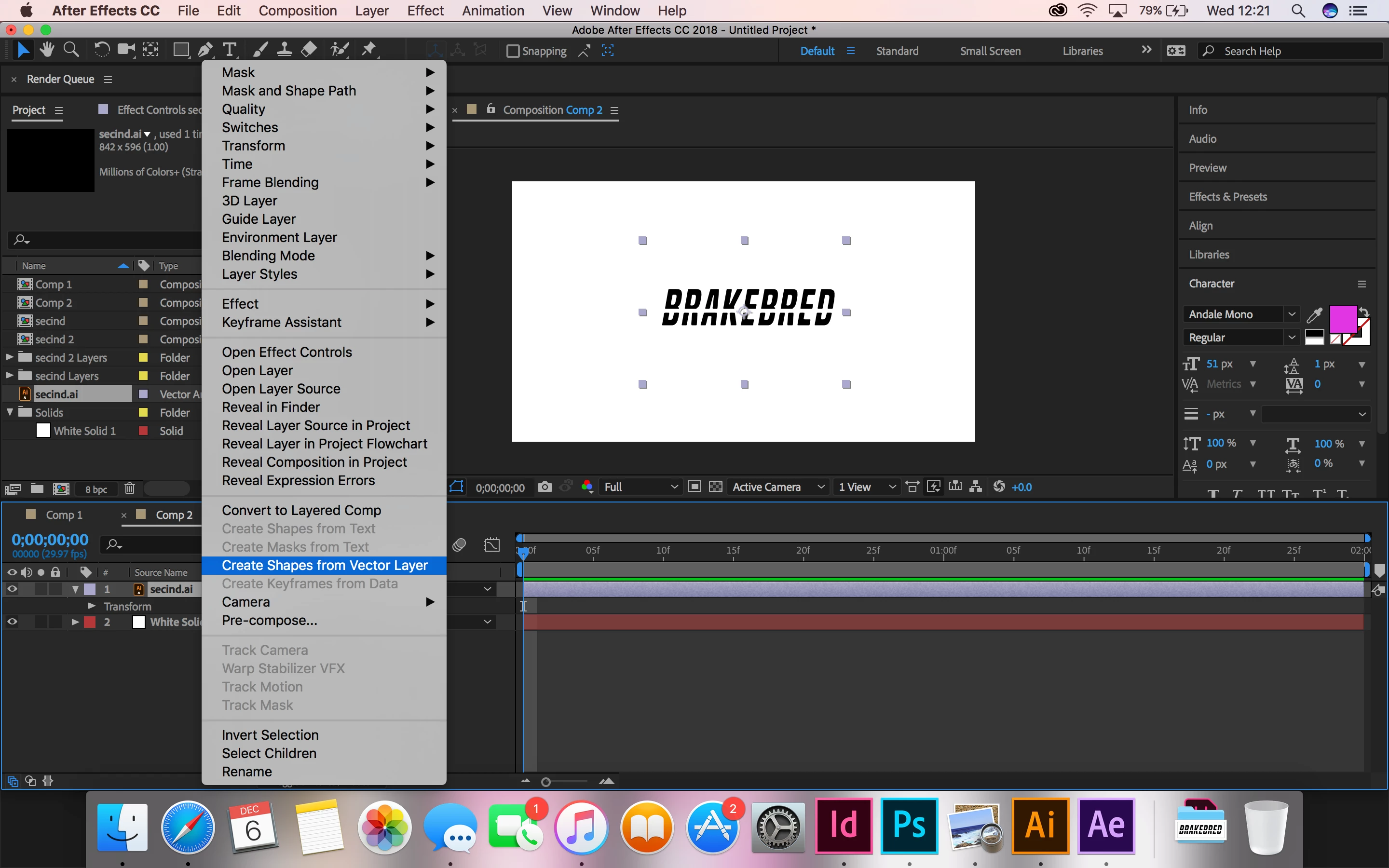 Second, determine if converting to shape layers is necessary. There are only two reasons to convert vector layers to shape layers and there are a bunch of reasons not to do it. A vector layer converted to a shape will lose custom gradient fills, styles, effects, some, clipping paths, compound paths, gradient masks, blends and a bunch of other things you can use in Illustrator to class up your illustration. There are only two things to gain by converting a vector image to a shape layer. The first is the ability to animate the vector path vertices, the second is the ability to add shape layer animators like trim paths and repeaters.