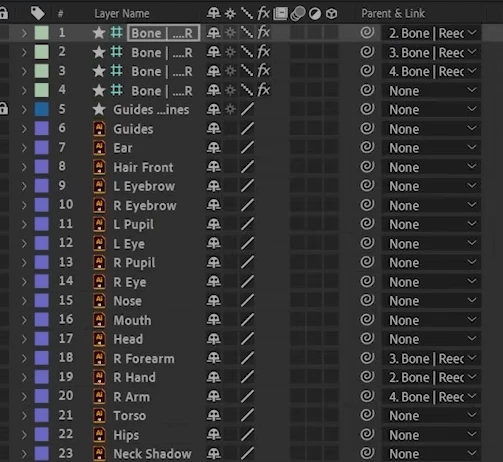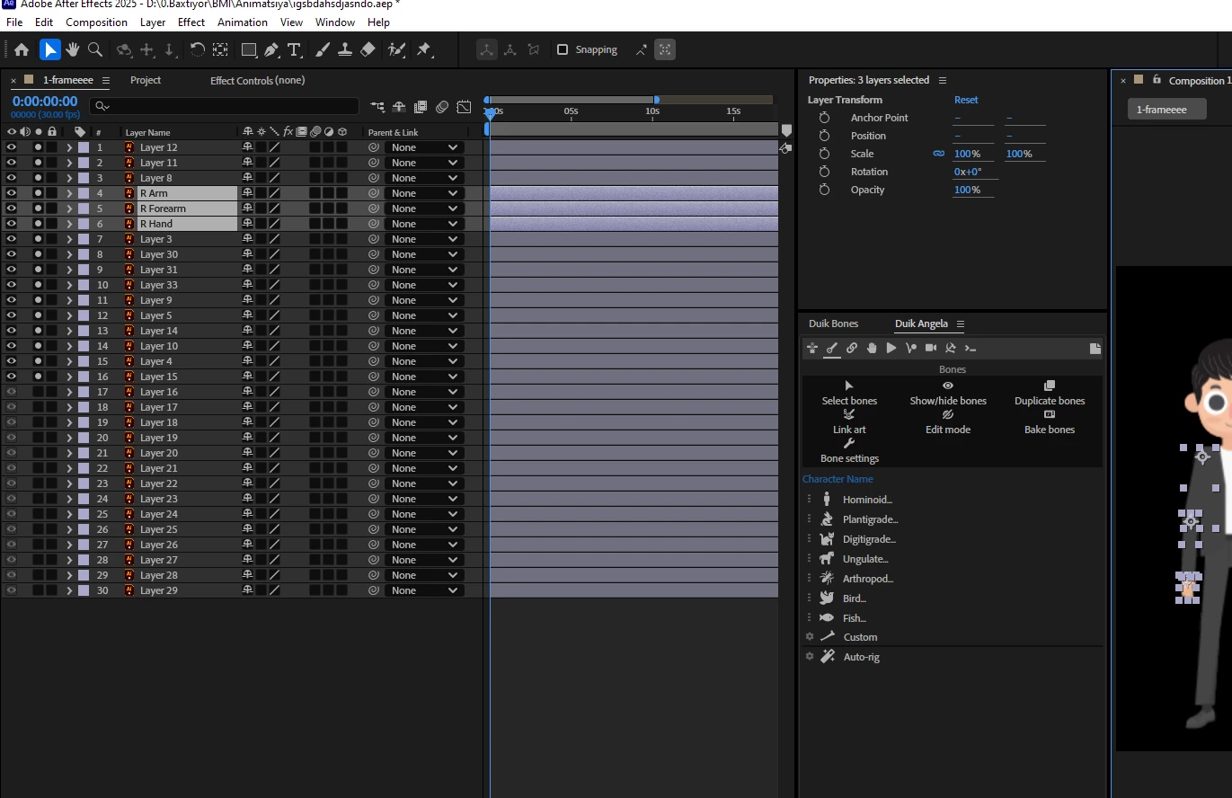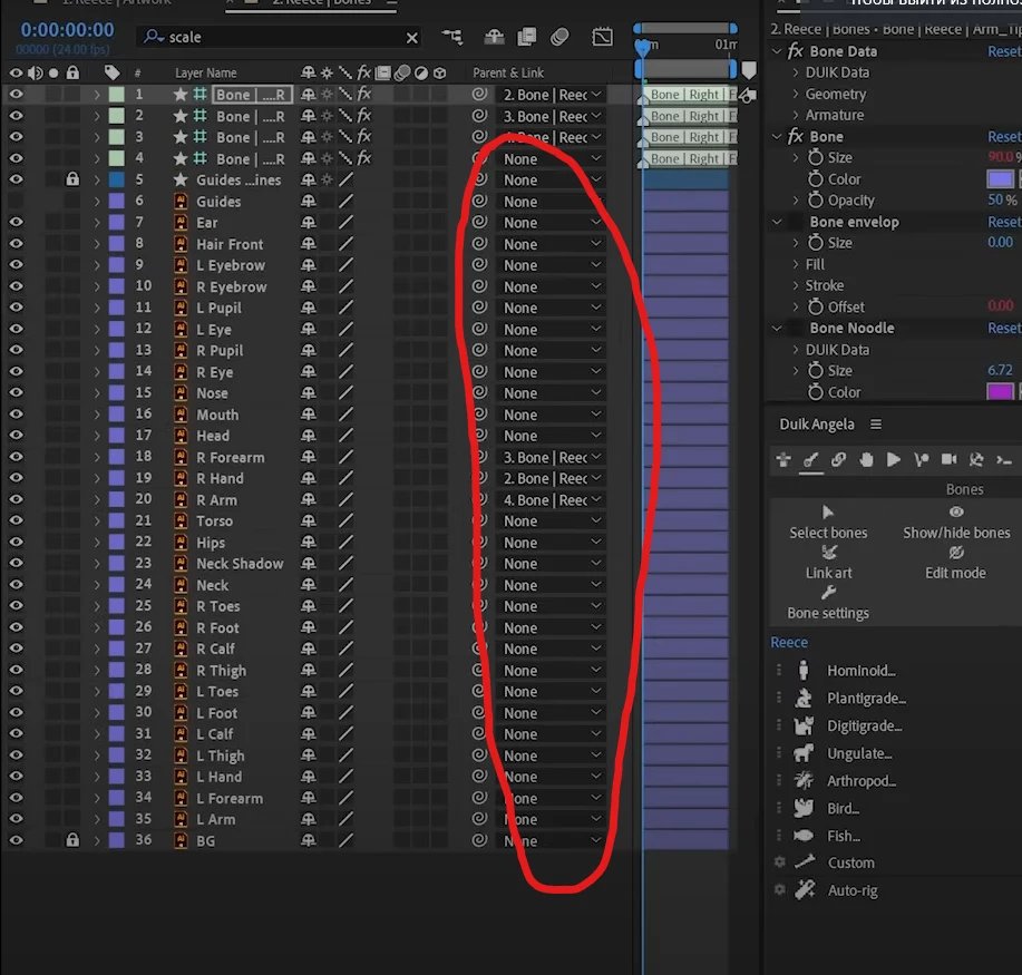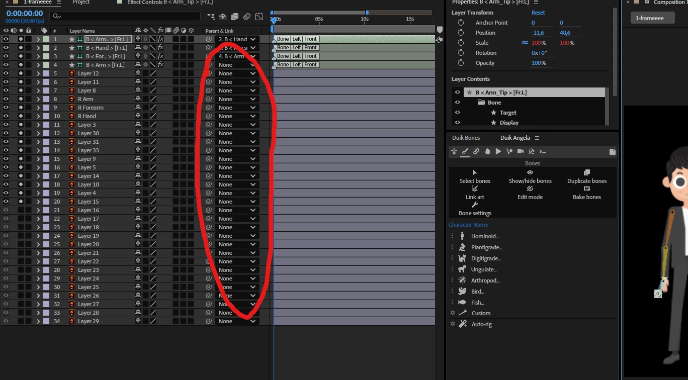 When I use duik, I select the desired hand shapes and start the generation by selecting the wrists from within the humanoid. As in this picture, there is no automatic connection between the bones and the illustrator layers. I have been repeating it like in the videos but I am not getting the connection. What can I do, how can I fix this?