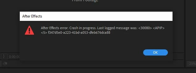 After Effects error: Crash in progress. Last logged message was: <30080> ‹APIP>