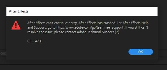 After Effects can't continue: sorry, After Effects has crashed. For After Effects Help