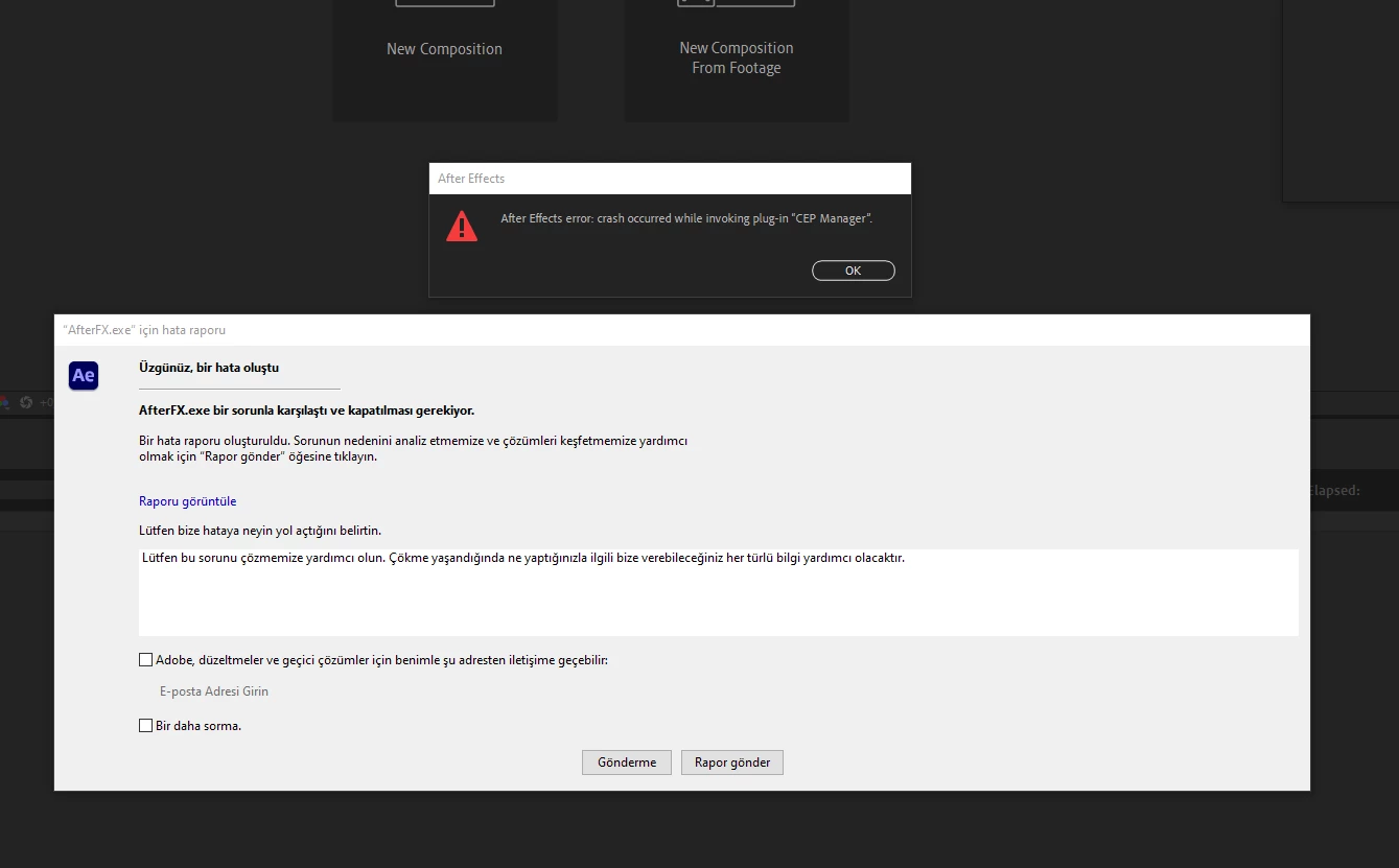 I do not encounter this problem when working in After Effects. I get this problem when I close the work after it is finished. The program gives an error and closes, and when I try to open it again, that work does not open.