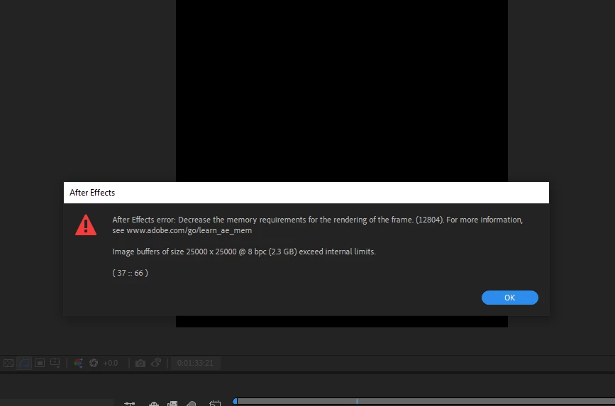 after effects error : Decrease the memory requirments for the rendering of the frame (12804)