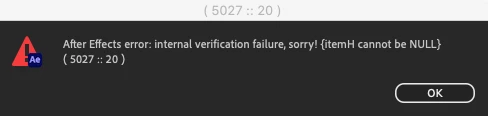 After Effects error: internal verification failure, sorry! itemH cannot be NULL