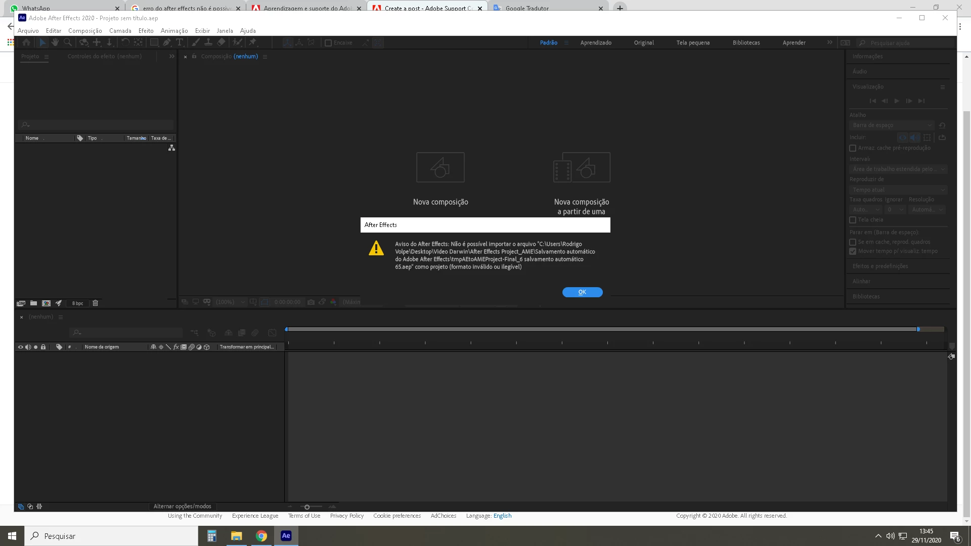 : after effects error it is not possible to import the file as a project (invalid or unreadable form