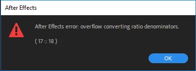 After Effects error: overflow converting ration denominators (17::18)