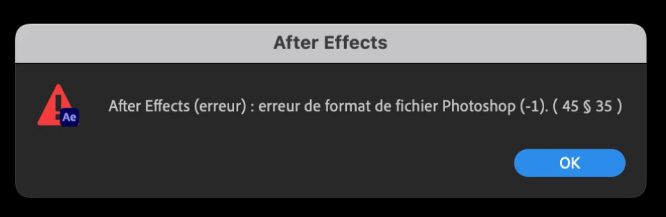 After Effects error: Photoshop file format error 1. (45::35)