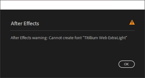 After effects Font Error Message, Aftereffects Error, Aftereffects font panel