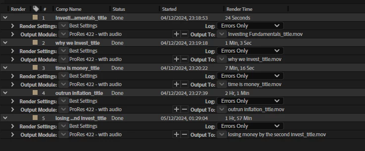 Here's a screenshot of the render queue I left last night: