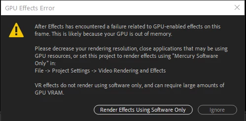 After Effects has encounterd a failure related to GPU-Enabled effects on this frame