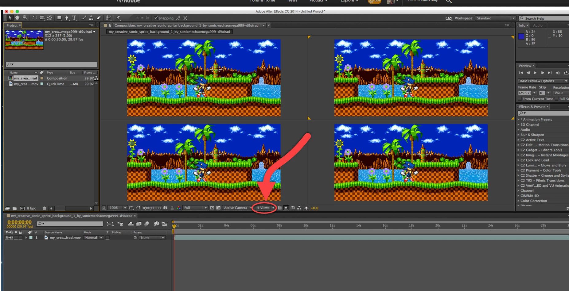 After effects has four screens what do I do please help!