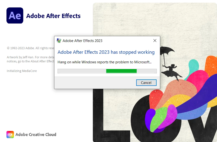 after effects has stopped working error