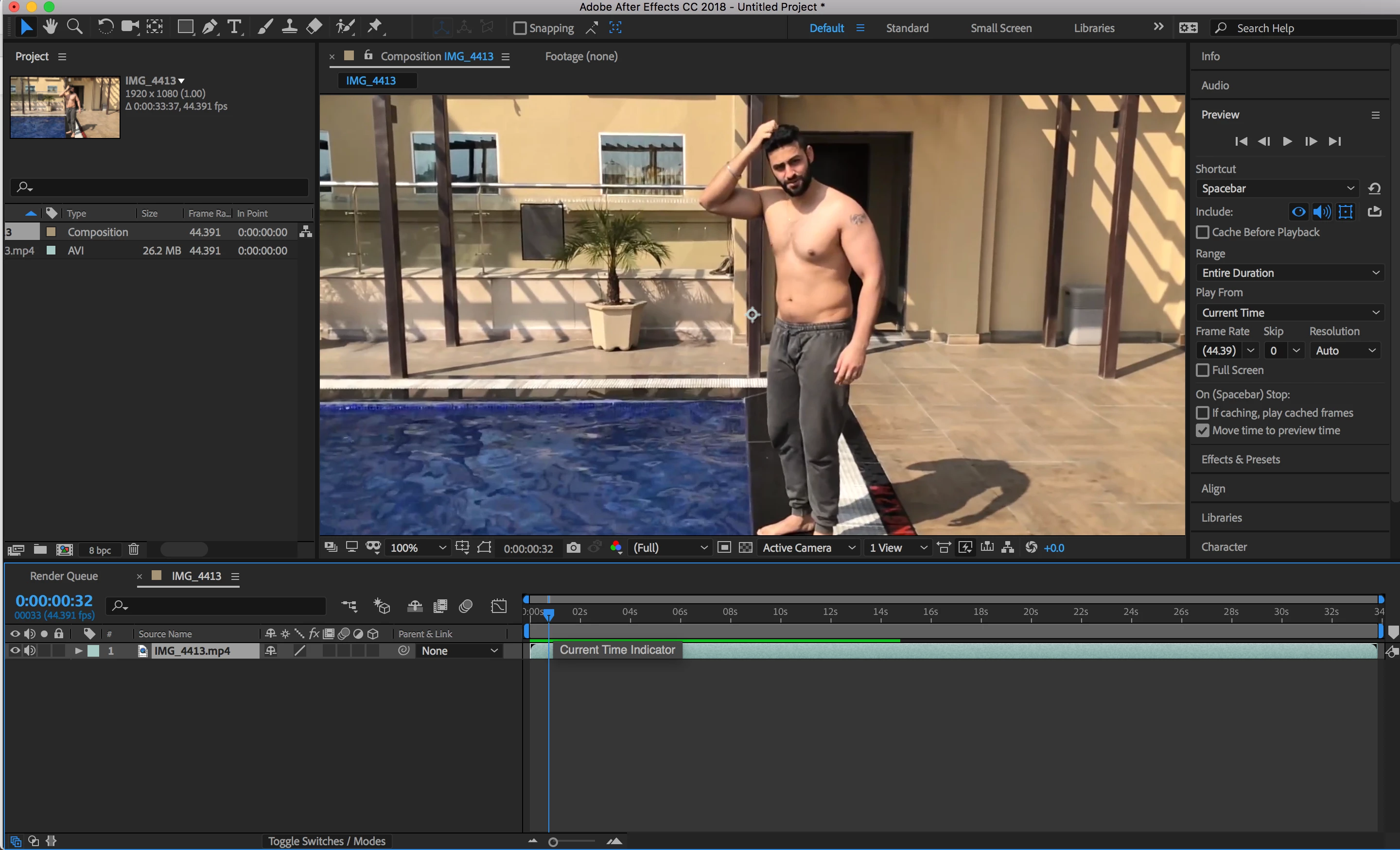 The first big one is that each time I click on Spacebar to RAM Preview, the preview stops around the 15 second mark rather than complete the video. It doesn't stutter there, it just loops back to the start. I have to move the playhead/time indicator ahead manually each time I want the video to playback more.
