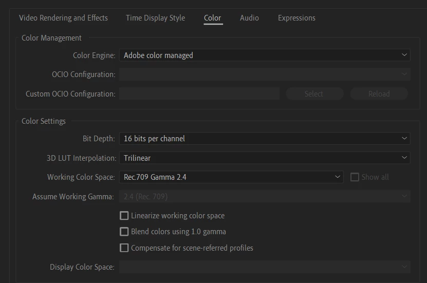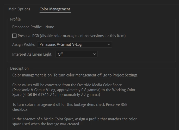 I've attached my colour space settings for the interpreted footage & my colour project settings. I've tried changing everything and nothing seems to work. I've tried multiple version of AE but still nothing works.