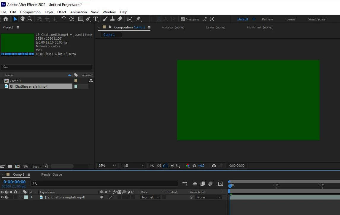 After effects is showing imported mp4 videos Green in color.