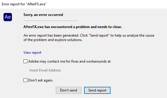 o afterfx.exe encontrou um problema e precisa ser encerrado