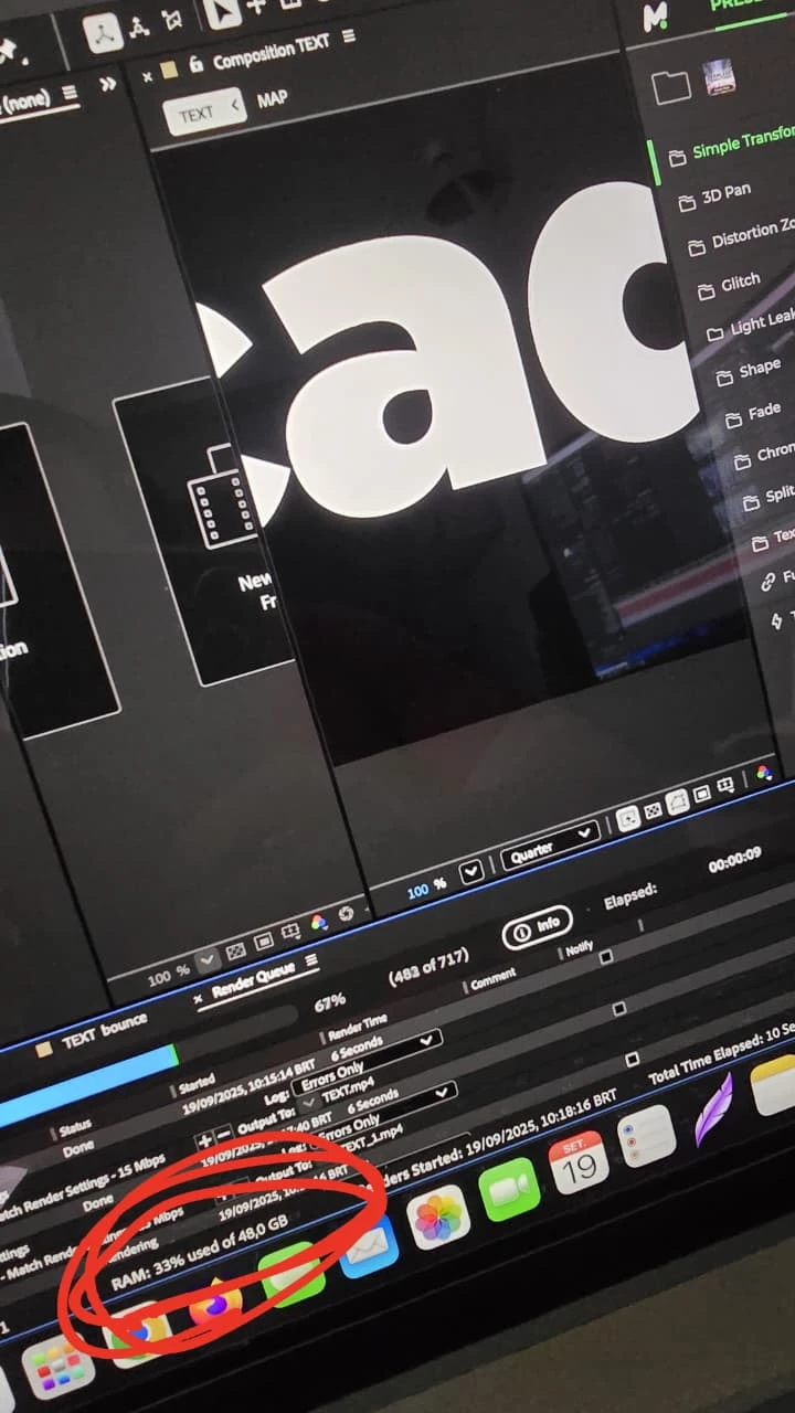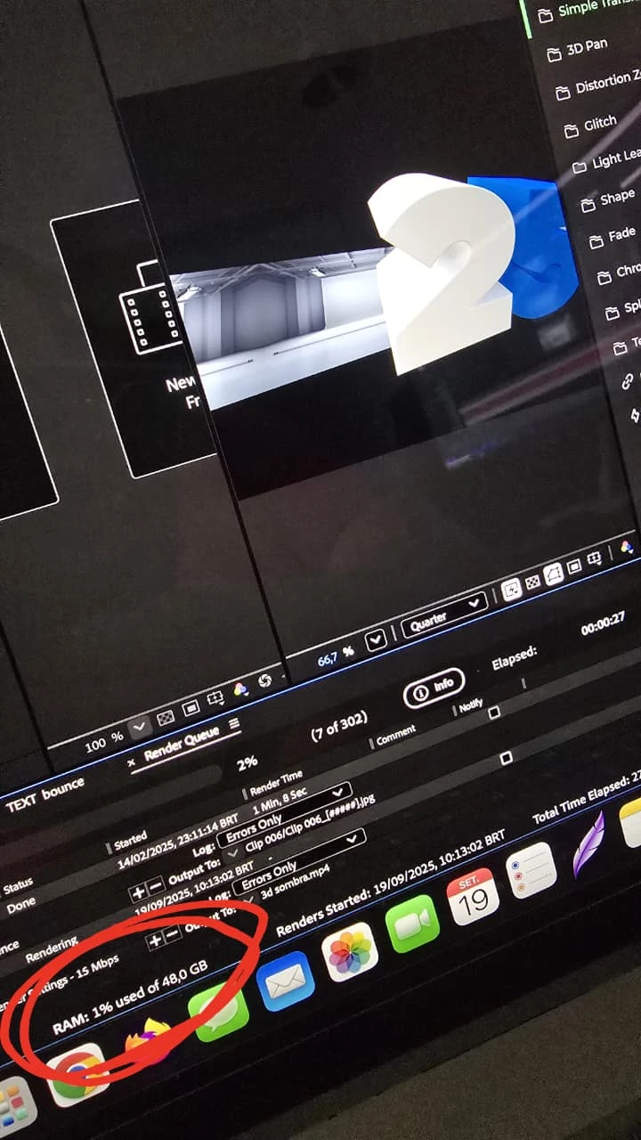 After effects não usa memória em composição 3D (macbook M4)