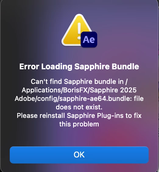Hello, my After Effects application is not opening after I uninstalled the Sapphire plugins. I uninstalled using the uninstall file and then deleted all the contents of the Boris/Sapphire package, as I did not wish to use it anymore. Now I am unable to open After Effects at all. This error keeps appearing, and whenever I click 'OK', it reappears. What can I do to solve this issue? I have paid for the application,n so why is it not working now that this plugin is gone? It was working fine before when it didn't have the plugin as well.