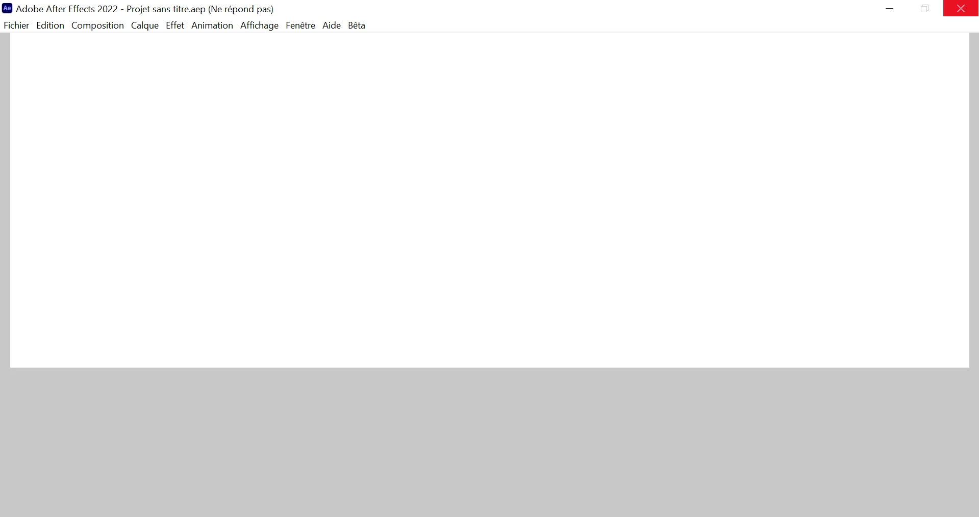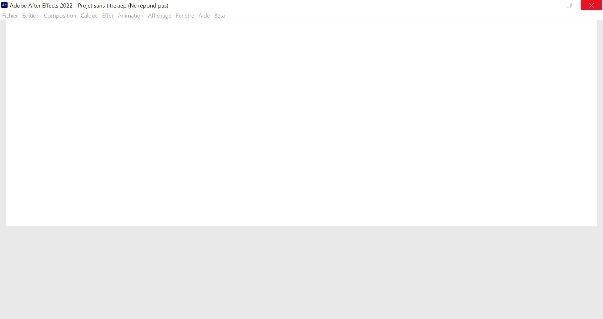 When I try to open Adobe After Effects, I get a normal startup (with the launch image), but once the startup is finished and the app opens, it just freezes and shows this screen: