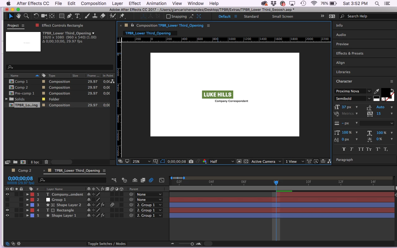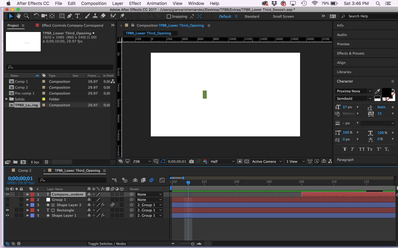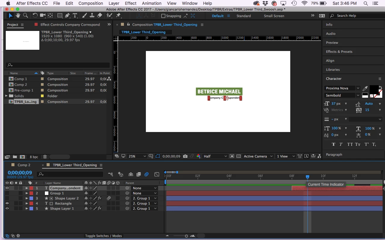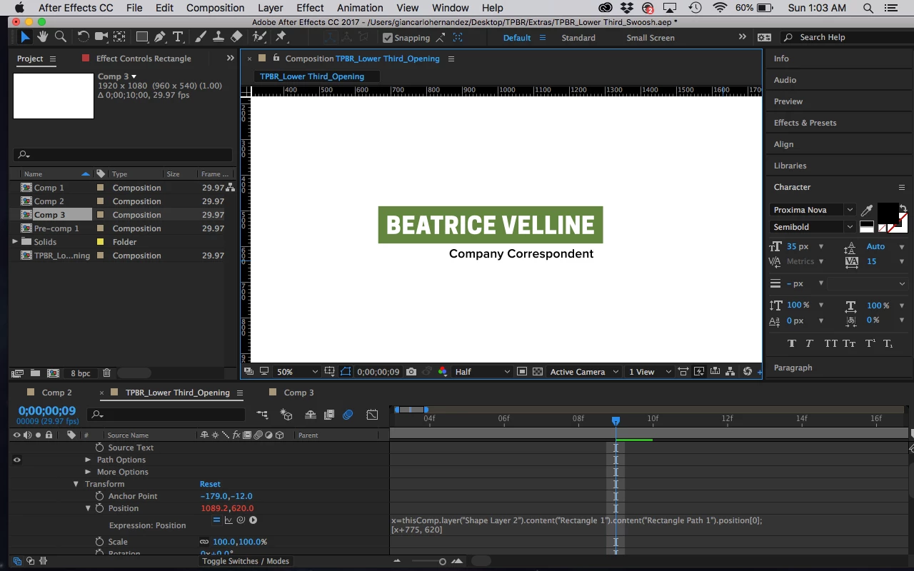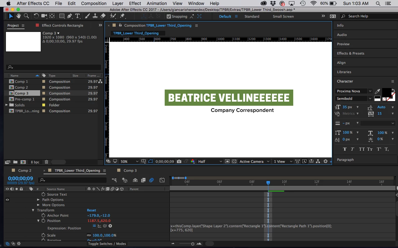 Hey everybody, I am wondering if anyone in the forum has experience with messing around with expressions in After Effects. I needed to find a way to create self-resizing lower thirds so I looked up some tutorials on youtube that could help me. I managed to get the main header to work the way I wanted it. The problem is that I have to place a caption underneath the header (for example, HEADER: Chris Richards, Caption: Vice President). This composition is meant to be used as a template that can be edited in Adobe Premiere, so whenever someone would type a new name in, I would want the caption to be right aligned (flush right) under the name in the text box. My dilemma is that I don't know how to scribe an expression that would move the captions position in accordance with the finishing of the header. if anybody can help me out, I would greatly appreciate it. Attached are some images of the project file.