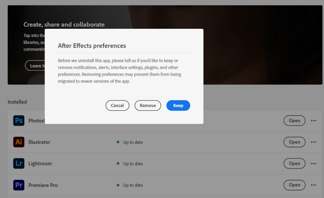 I have uninstalled After Effects, but this thing keeps popping up from time to time. I press remove or cancel but it keeps happening. What can I do about it?
