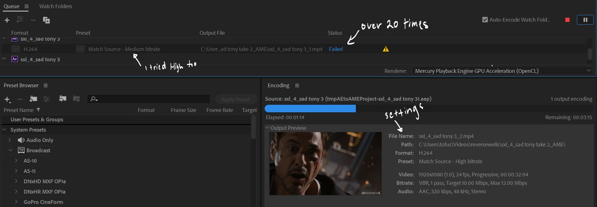 Writing to file: \\?\C:\Users\tofus\Videos\sxl_4_sad tony_ae.mp4