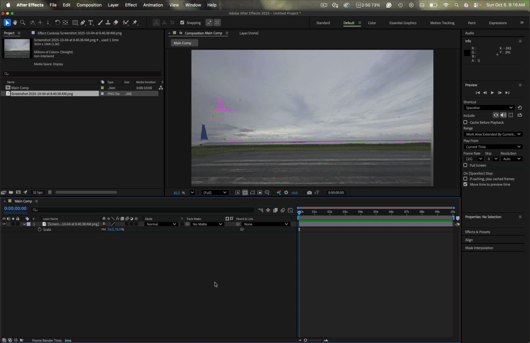 Hi all: I'm still trying to learn the roto-brush tool but I'm having some growing pains that I can't find answers to online. The video I'm working with is a plane taking off and flying out over the ocean. Attached is a picture of the scene I'm working with. It's a 20 second clip. I'm trying to mask the grass, the water, and the sky, all separately.
