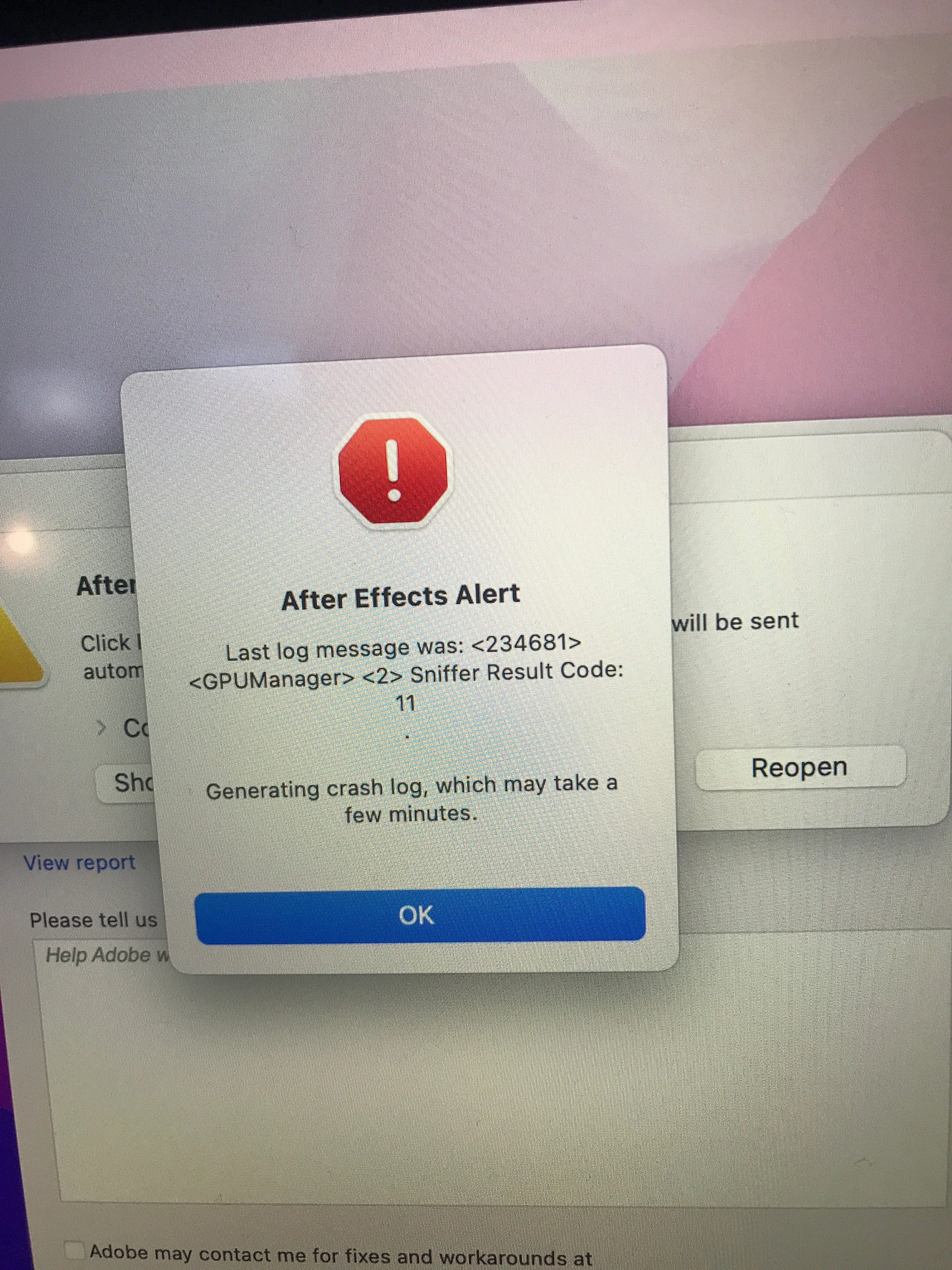 After Effects sniffer result code 11