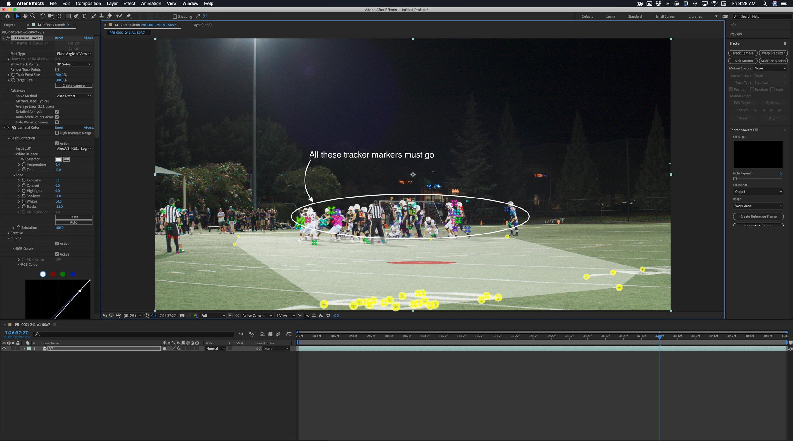 I hope this helps. Maybe this screenshot will also help. JR football at night, MoVI Pro + Segway for moving 4K footage at 120 fps for some slow motion. The first solve was terrible because of all these markers on the players: