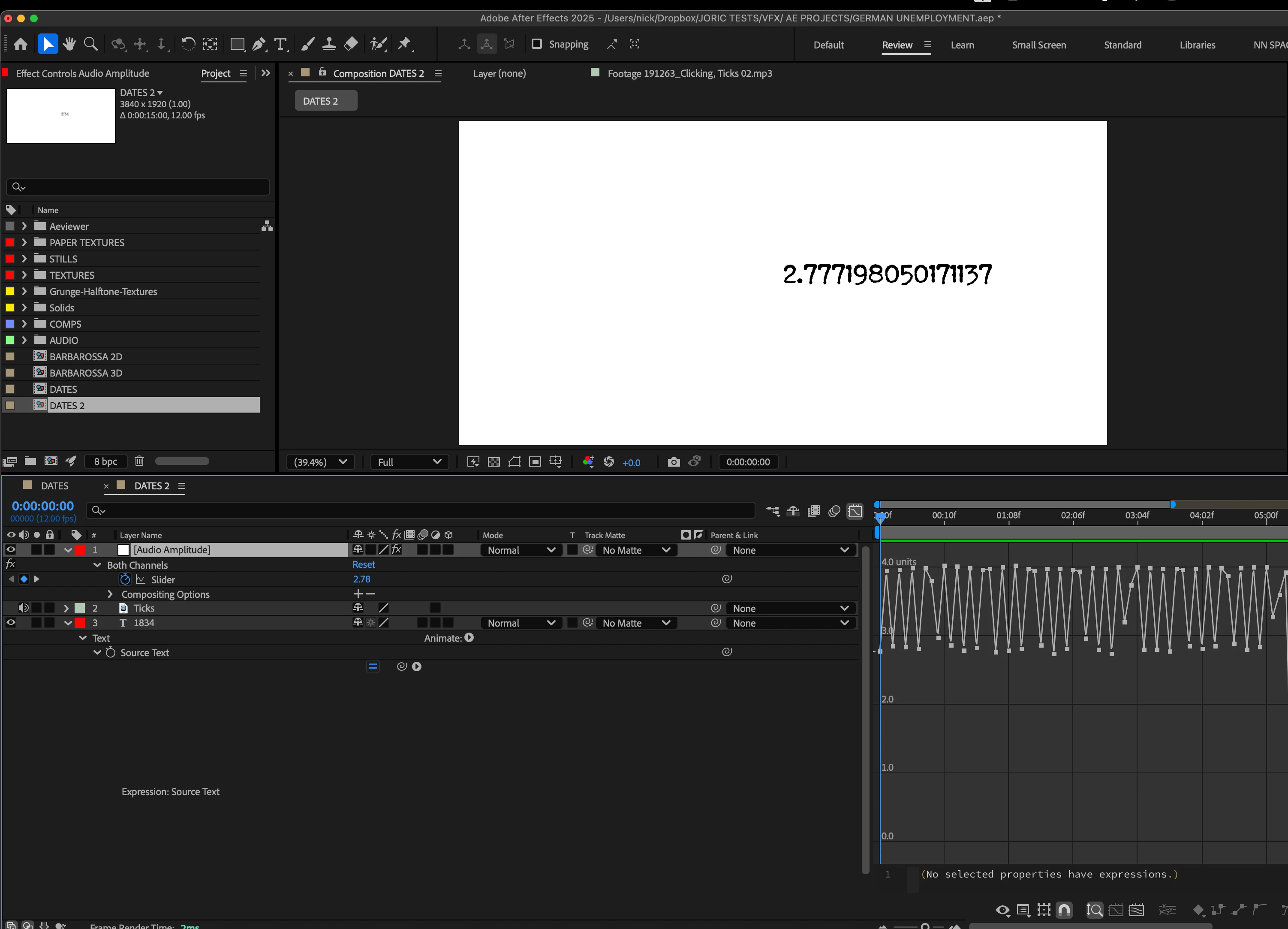 After Effects - trouble setting up an audio-driven expression-animated numbers counter