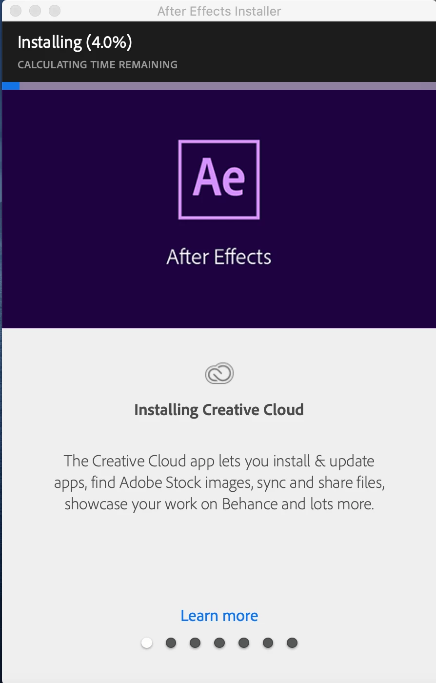 So I'm currently trying to download After Effects on my mac, (I have the lastest update of Catalina). It won't load past 4.0%, as shown below.