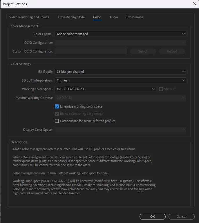 9. Set "Linearize working color space" in Project Settings -> Color to false