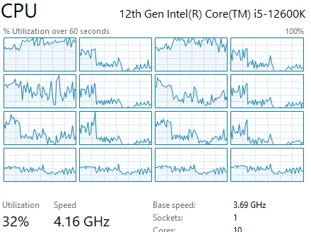 My basic specs: 12600k, 1050ti, 64gb ddr4 ram.