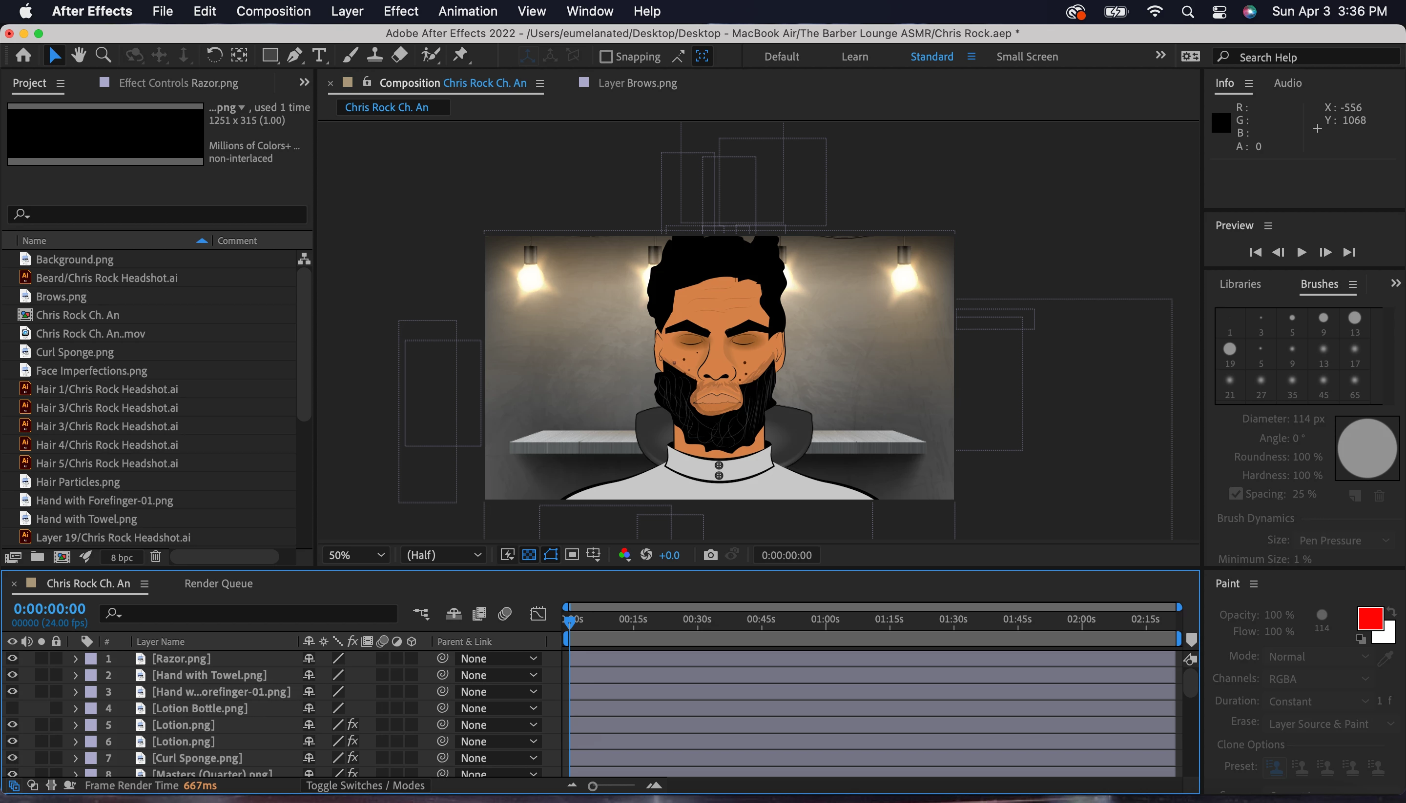 The second pic is how the video starts in AE but once exported and played in Premiere Pro, the first photo is how the video begins. I'm trying to figure out why pieces of the files are missing. The beard appears after like 20 seconds. It's like the video is all over the place once exported.