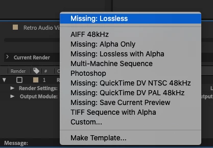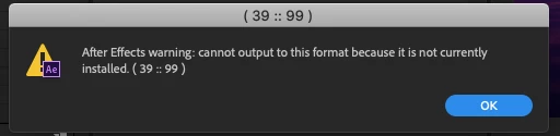 After Effects Warning: Cannot Output to this format because it is not currently installed (33 :: 99)
