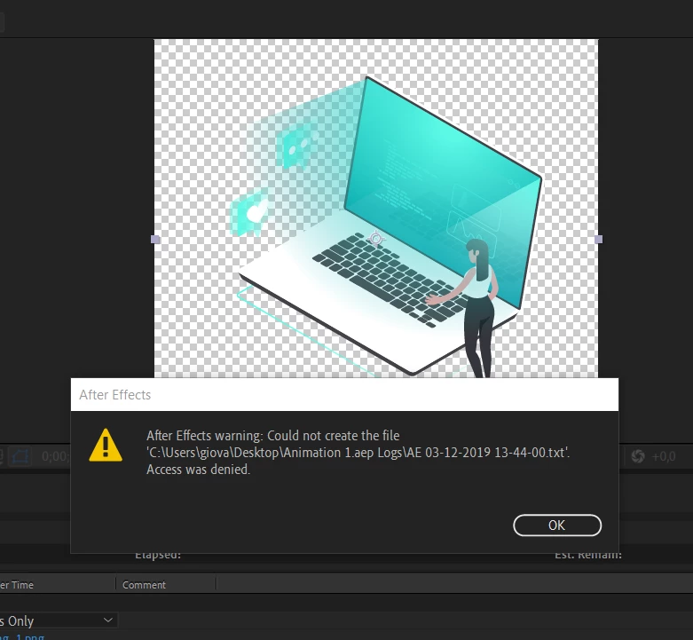 After Effects warning: Could not create the file. Access was denied