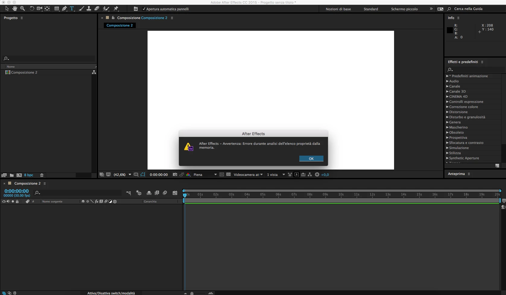 After Effects warning: Error parsing properties list from memory