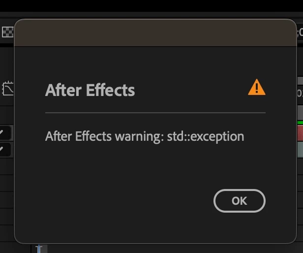I started using after effects and while i was adding the effects to my video then a pop up appeared which was saying After effects Warning std : exception. how do i reslove it and i can't restart my mac