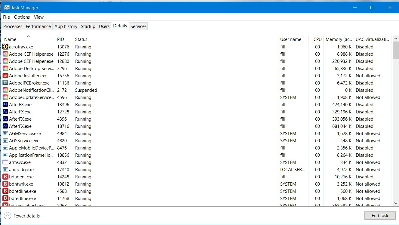 Pease help. I wen to open After effects v22 today and it loads but then freezes. After trying this a few times i decided to unstall, but it wont. Ive opened up the task manager, gone to the details button and now i see several copies of afterFX running. i try to end process but says i cant. I am sooo stuck in a loop and im making it worse. How do i fix this?? Thanks.