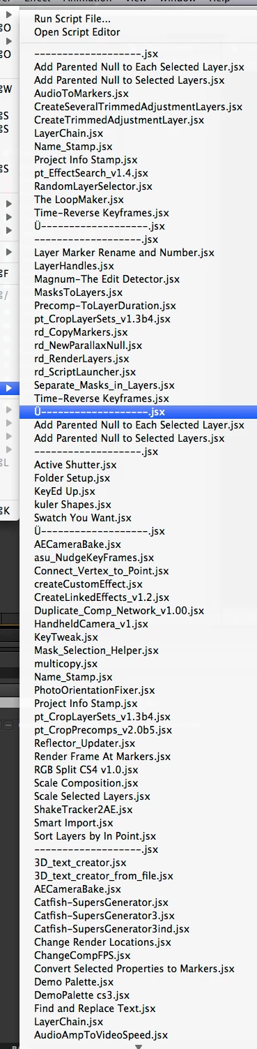 Just like the Effects Palette, a Scripts Palette would allow groups, folders, organization, and Quickfind search boxes. Here's the menu mess I have to deal with now...