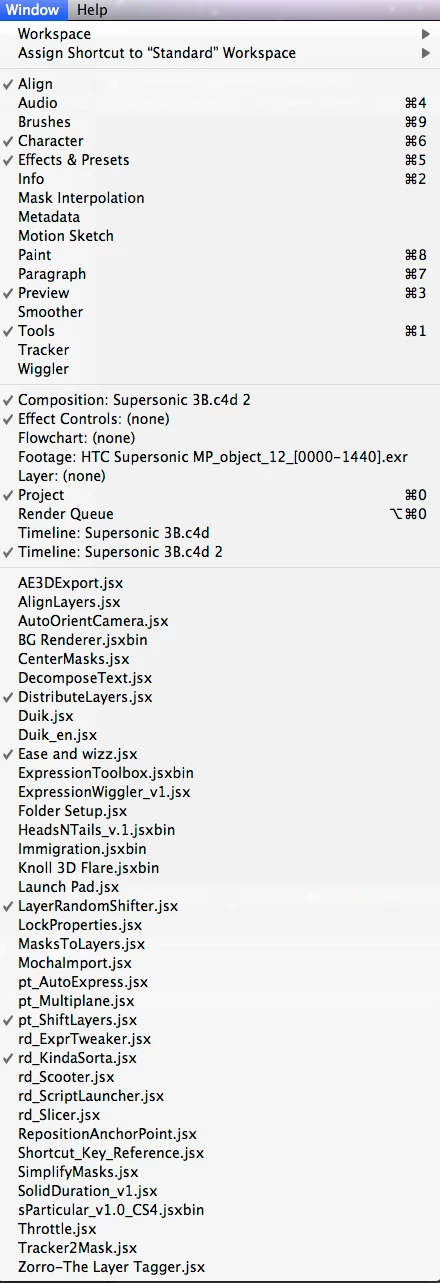 Same for the Window Menu. With Test Gear and Red Giant PlaneSpace installed my Windows Menu is about to roll off the bottom of the screen.