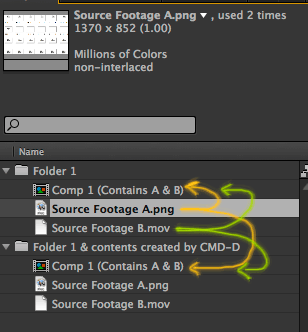 If you use the Duplicate command on a folder, the new duped comp references the old footage. To me, that doesn't make sense.  Everything in the duplicated folder should reference the same files, but in the new duplicated path.