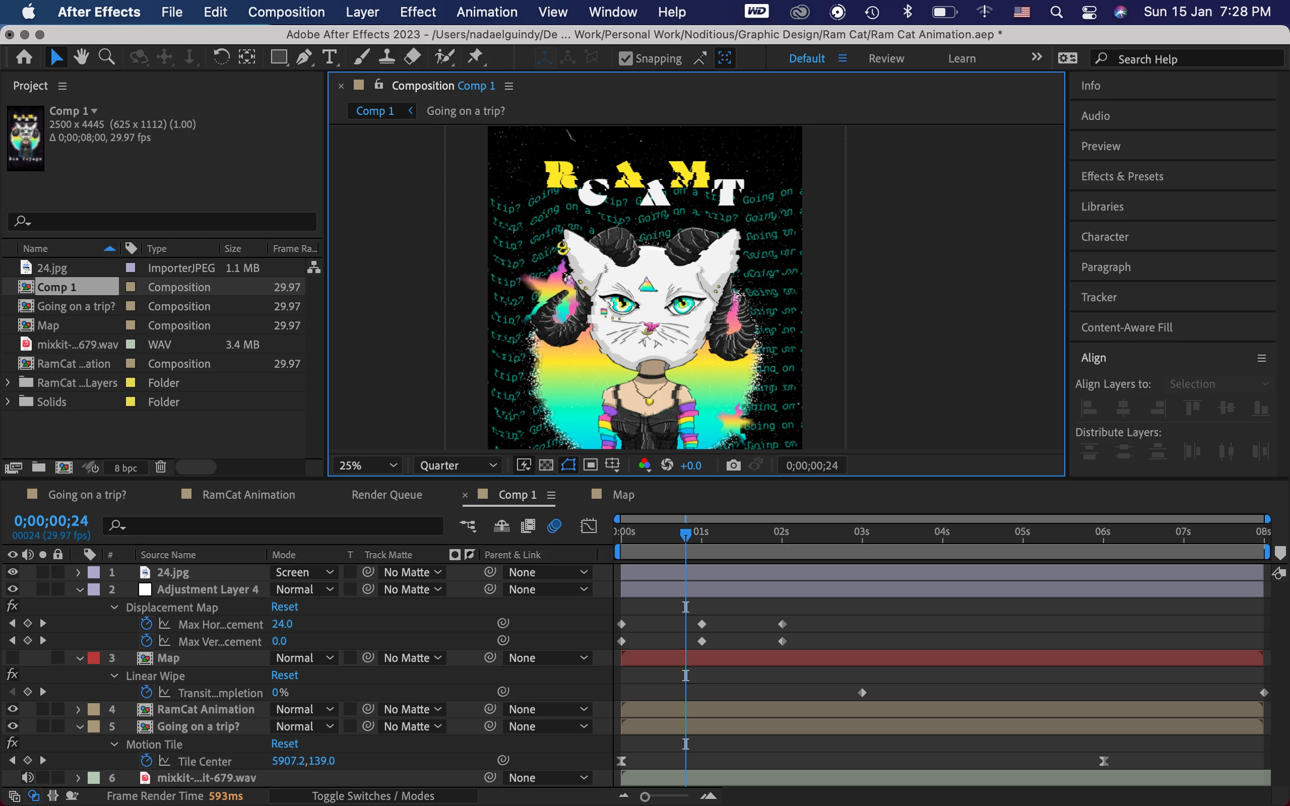 Hello, I was working on this project and after trying to render it, I realised the pre-composition for the type animation was not showing up in the final render, I tried rendering it in after effects and adding it to the media encoder and still nothing seems to help. I am not sure where the issue is, mind you that I recently updated the program to the 23.1 version not sure if that is the problem. I tried purging the cache nothing really changed. The operating system I am using it with is macOS Big Sur Version 11.7 not sure if it is a compatibility issue with the render engine or something else as it worked fine before the update.