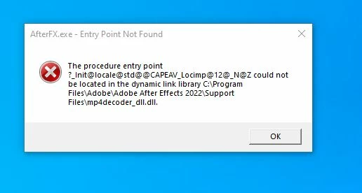 AfterFX.exe - Entry Point Not Found