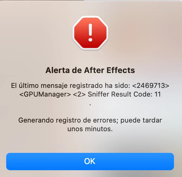 Ha salido este mensaje en mi computadora al ejecutar After Effects. Estoy pagando una licencia que no puedo utilizar. El sistema operativo de mi iMac es Monterey