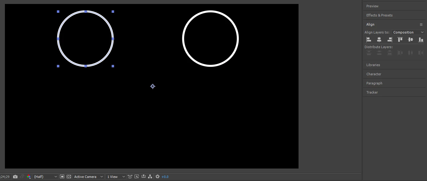 I have a very simple alignment issue that I tried searching for a while online for an answer for. I have 2 circle objects on separate shape layers, as shown in this screenshot: