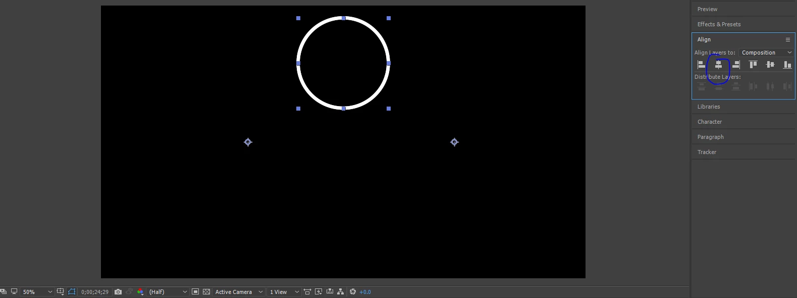I want them too be centered horizontally together as if they were 1 object. I tried grouping them into a pre-composition, but the center to composition button doesn't work like that. If I click center to composition, they stack on top of each other, which is what I expect, although that's not what I need