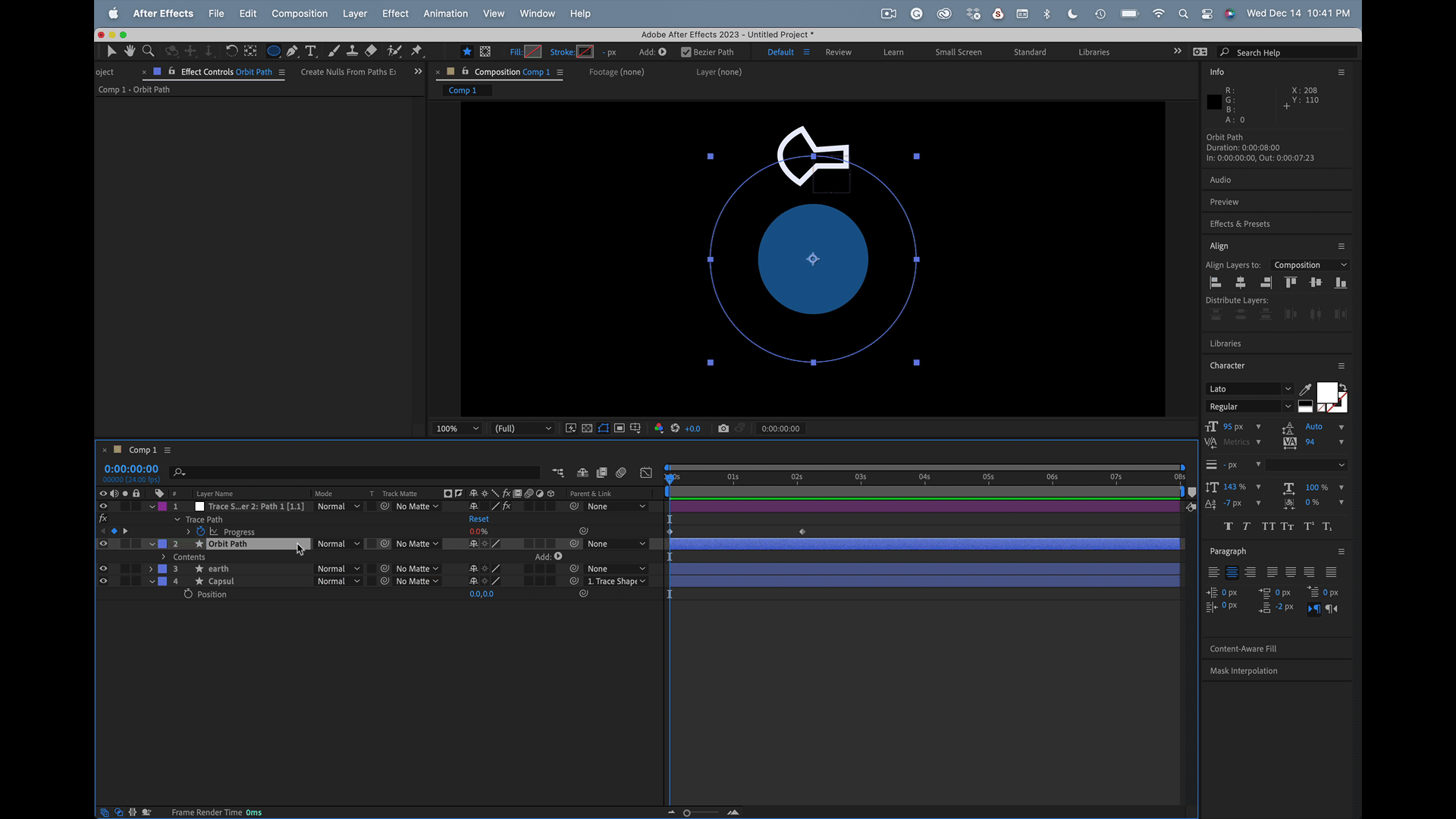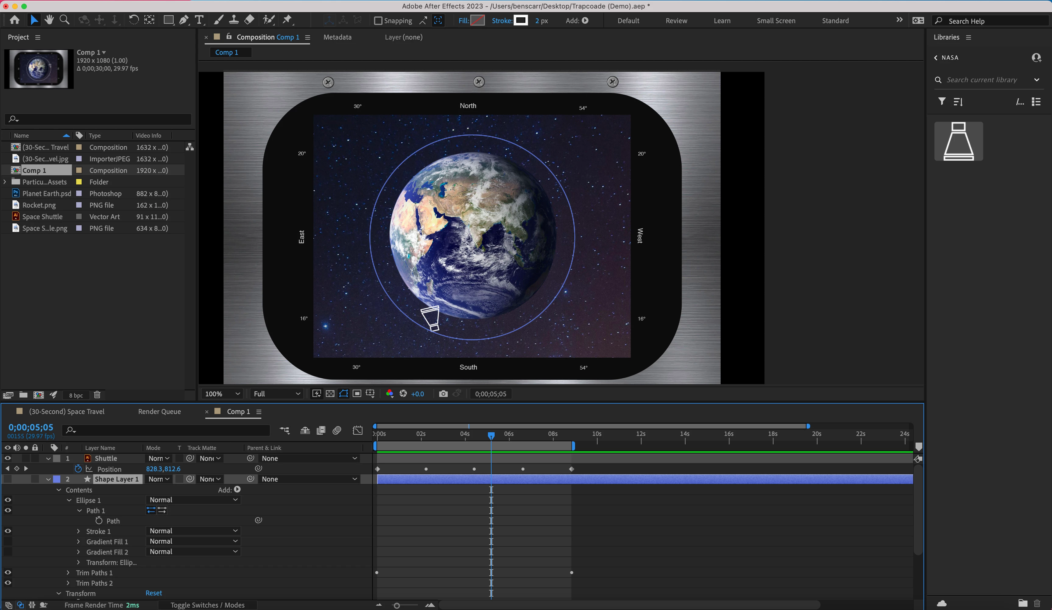 I'm trying to create an animation were a Shuttle orbits around Earth.